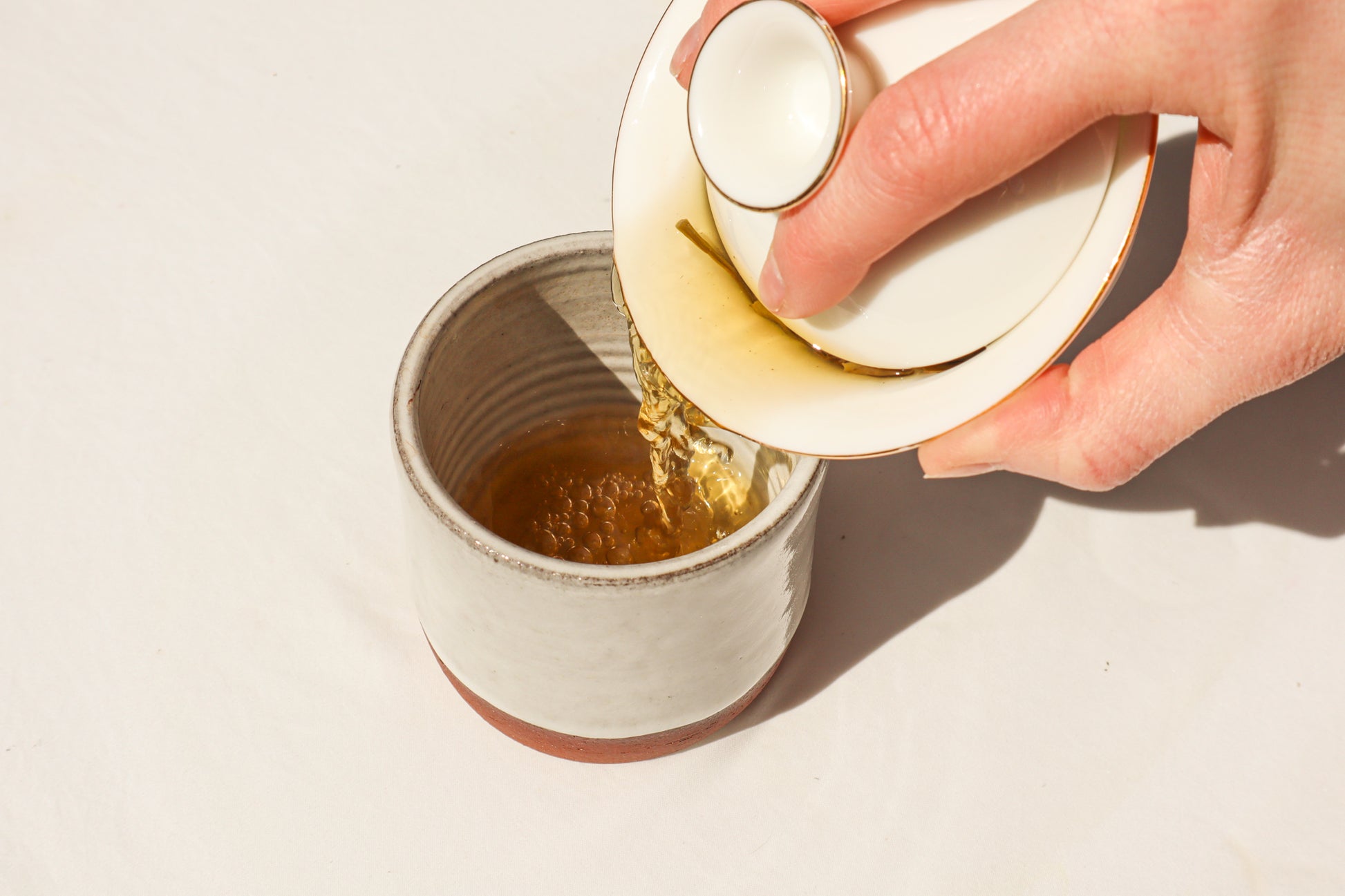 You can use the gaiwan with traditional tea cakes or loose leaf teas. Simply add your tea, pour in hot water, and let it steep. When ready to pour, tilt the lid slightly to create a small gap, holding back the leaves while allowing the liquid to flow smoothly into another cup.