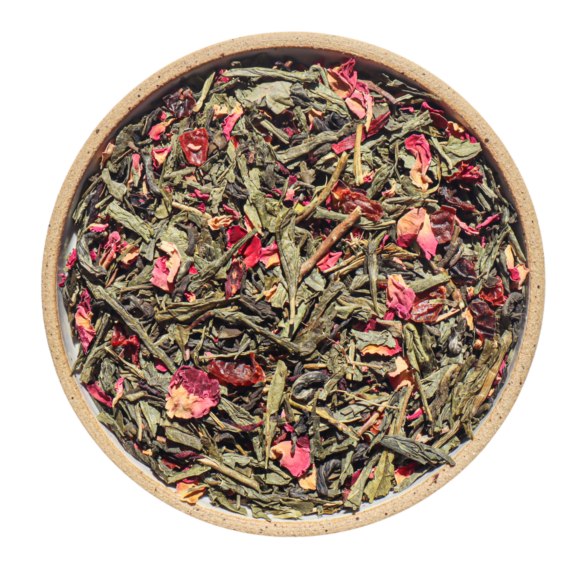 green tea, rosehips, rose, jasmine, natural flavor, hibiscus*