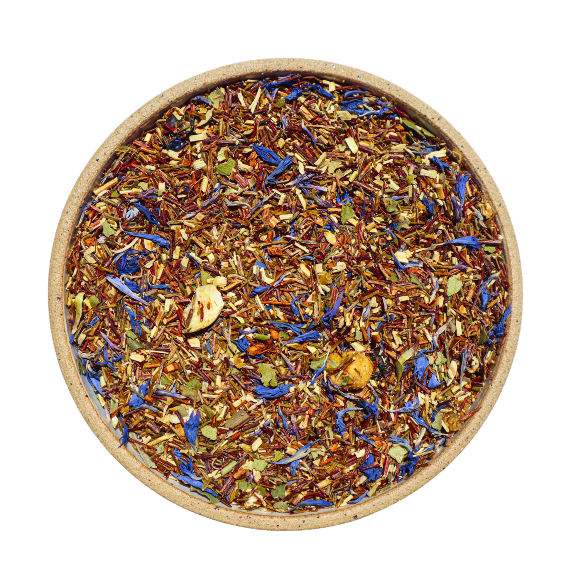 green rooibos, red rooibos, natural flavors, schisandra berry, lemon myrtle, blue cornflower, freeze dried mango