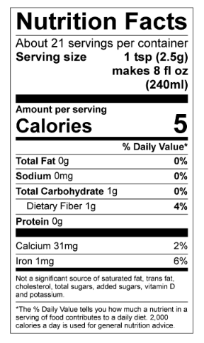 1 - 2 teaspoons in 8 oz of hot water for 5 - 10 minutes